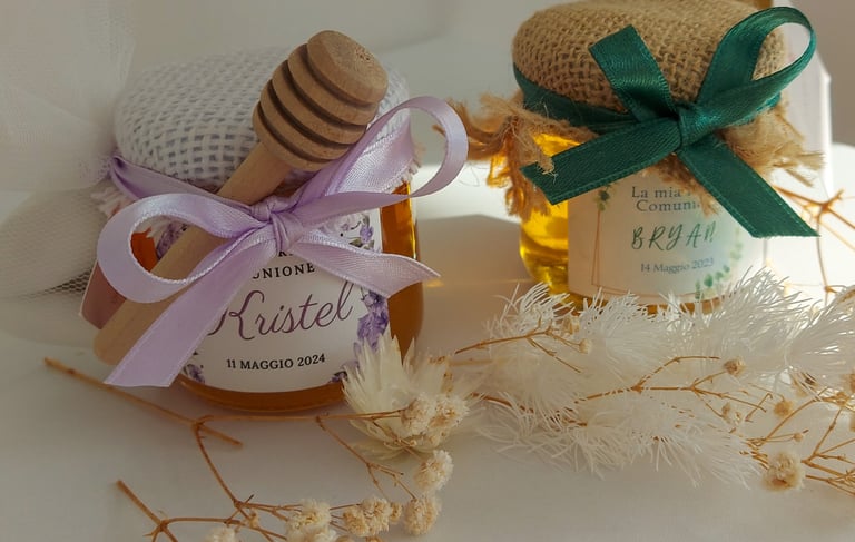Le Bombomiele accompagnano i momenti più belli della vita: matrimoni, battesimi, compleanni importanti e cresime. Per ogni evento, offriamo personalizzazioni su misura — nomi, date, dediche e confezioni coordinate — così ogni ospite riceve un ricordo autentico e raffinato, unico come il giorno che lo ha ispirato.